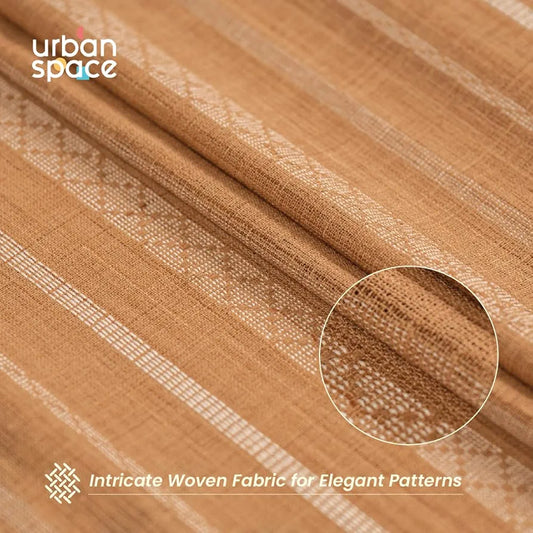Urban Space Striped Aari Collection Weaved Sheer Curtains for Window 5 feet Long Light Filtering Curtains with Eyelets and TieBack,Set of 2 Decorative Curtains Vertical Weaves Soft Brown