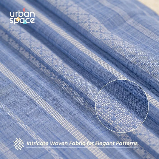 Urban Space Aari Collection Weaved Sheer Curtains for Window 5 feet Long Light Filtering Curtains Set of 2 Decorative Curtains for Living Room Vertical Weaves Blue Colour