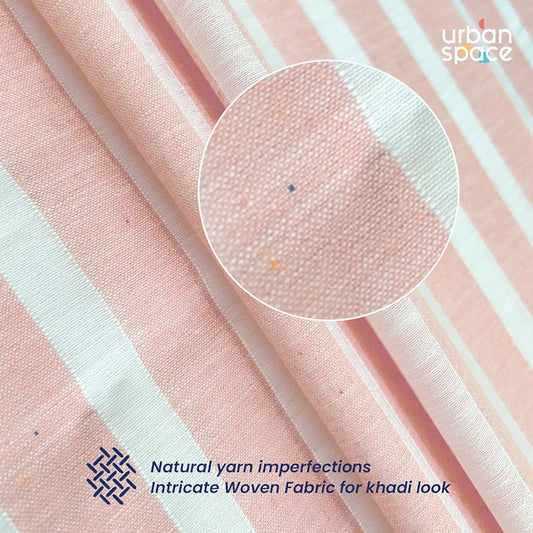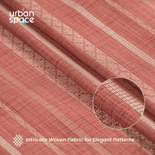 Urban Space Polyester Striped Aari Collection Weaved Sheer Curtains for Window 5ft Long Light Filtering Curtains with Eyelets and TieBack, Set of 2 Decorative Curtains Horizontal Weaves Peach