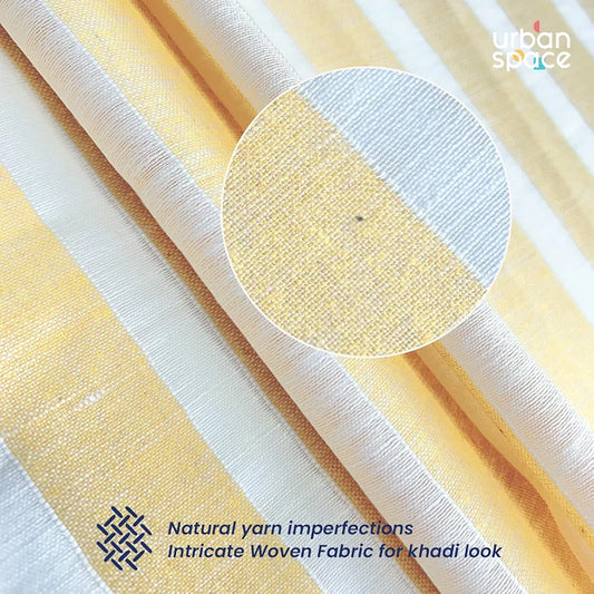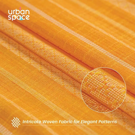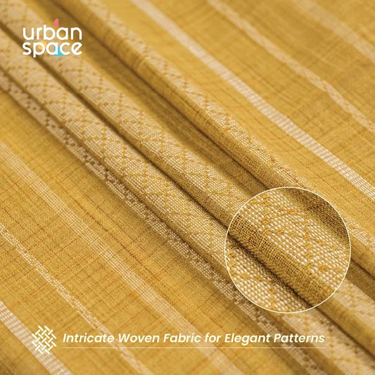 Urban Space Polyester Stripes Aari Collection Weaved Sheer Curtains for Window 5ft Long Light Filtering Curtains with Eyelets & TieBack,Set of 2 Decorative Curtains Horizontal Weaves Yellow