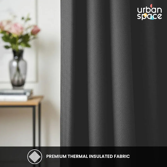 Urban Space Blackout Curtains for Window 5 Feet Set of 2, Thermal Insulated Curtains with Eyelets and Tiebacks Solid Curtain Soft GreyColour