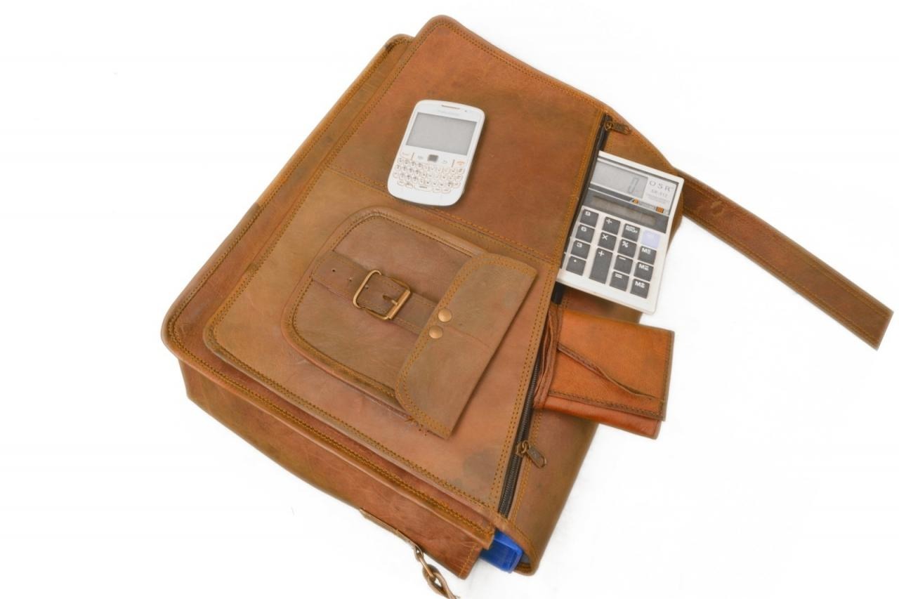 Measuring an impressive 18 inches, this handmade bag is a statement piece that seamlessly blends fashion with utility. The genuine leather used in its construction not only adds a touch of opulence but also ensures durability and longevity. The bag features a meticulously designed layout with a myriad of pockets, making it a versatile accessory for the modern individual.