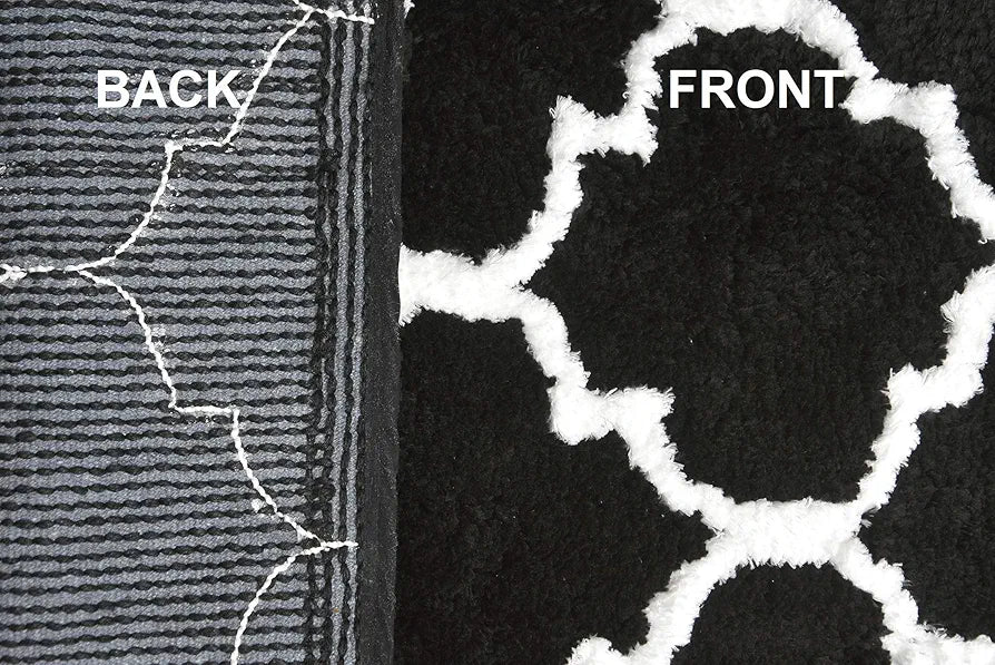 Aerohaven Glorious Super Soft Microfiber Abstract Moroccan Designer Anti Slip Bathmat Black Colour