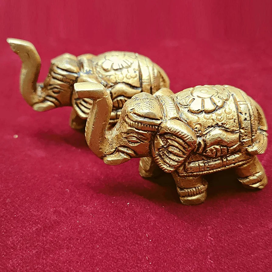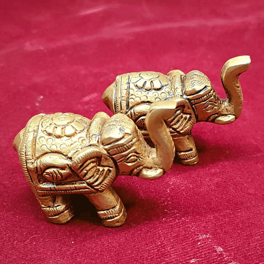 - Elephant Pair for Home Decor Weight : 100g, Height : 6.5cm, Length: 4cm, Width : 2.5cm, Metal : Brass.