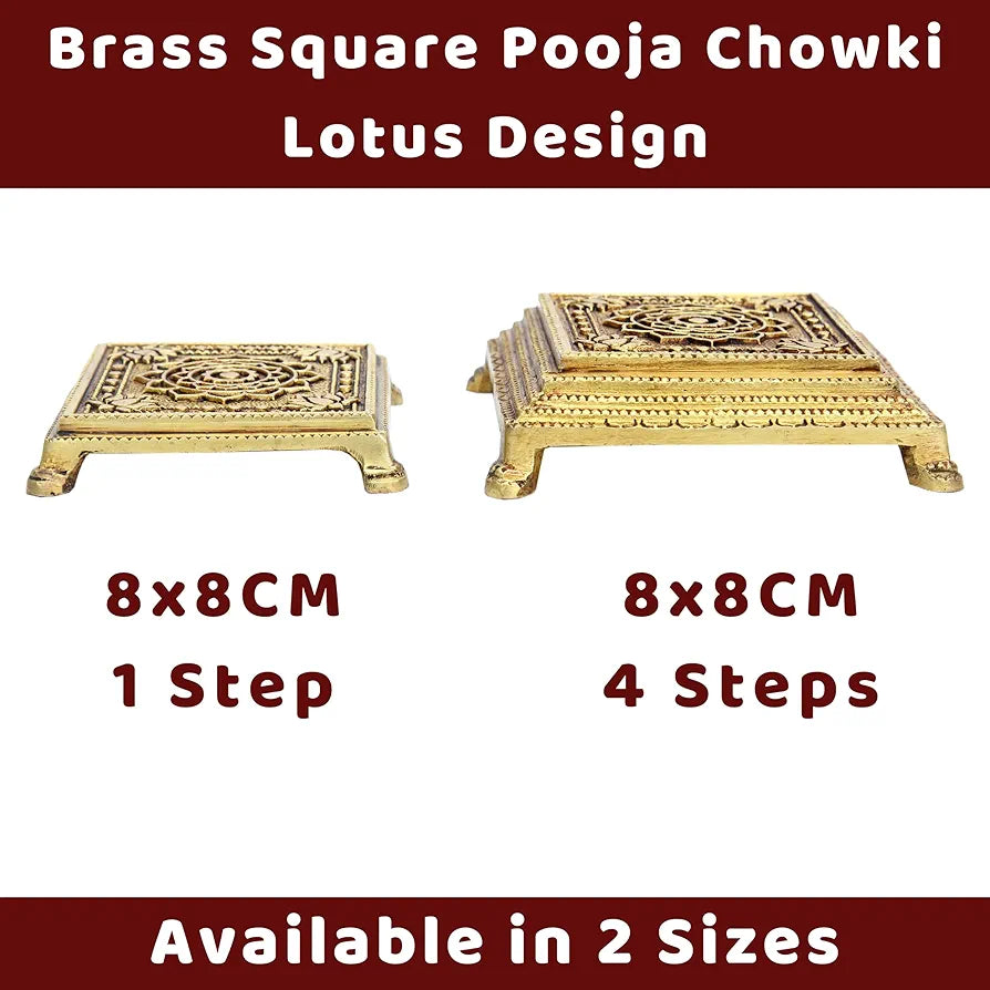 Brass Pooja 1 Step Chowki Square with Lotus Design