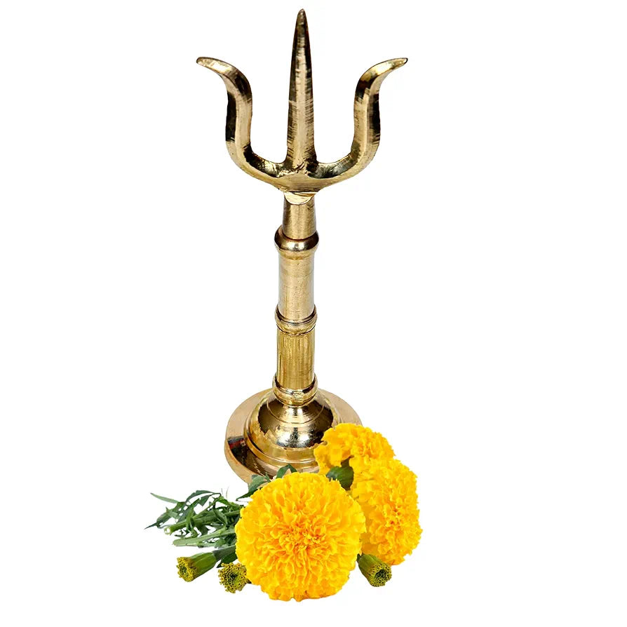 - Brass Trishul on Stand Dimensions: Height : 7 Inches, Weight : 160g, Metal : Brass.
