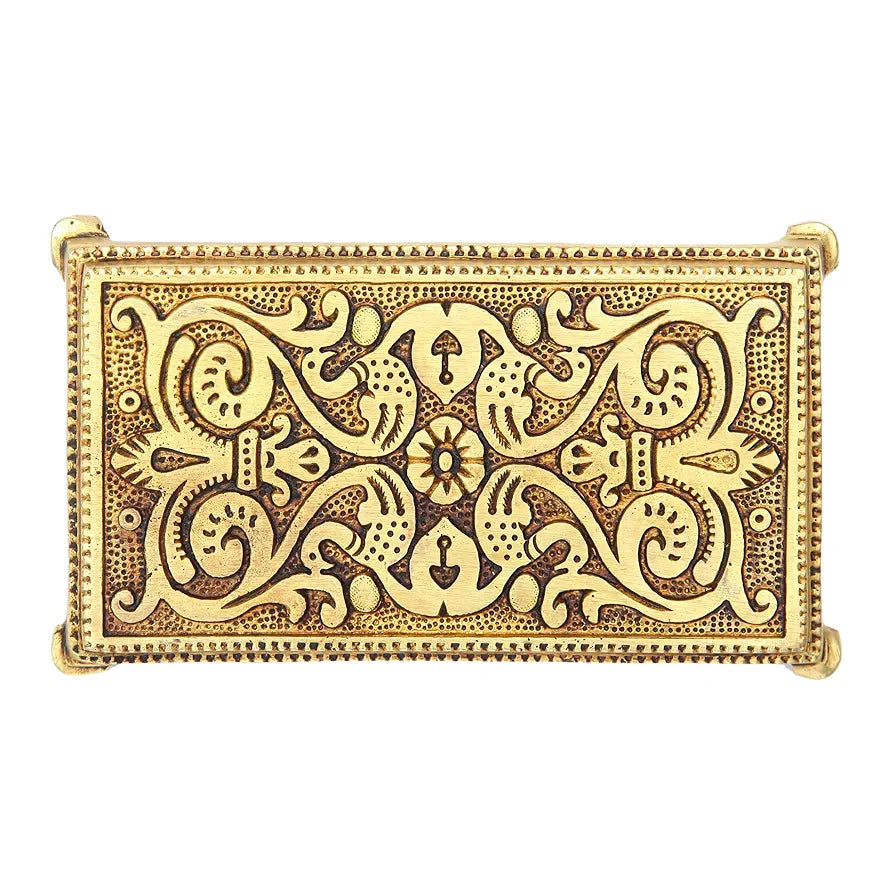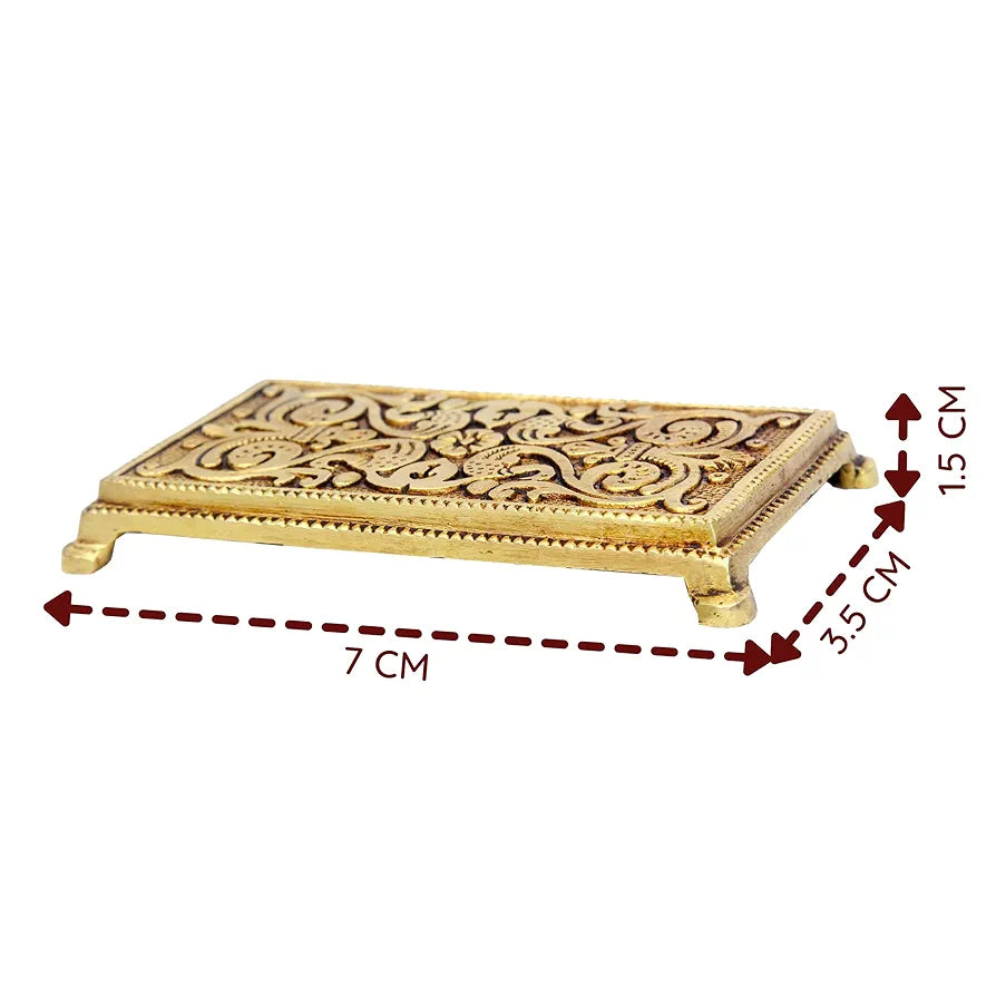 - Rectangle Brass Chowki Weight : 165g, Length : 7cm, Breadth : 3.5cm, Height : 1.5cm, Metal : Brass.