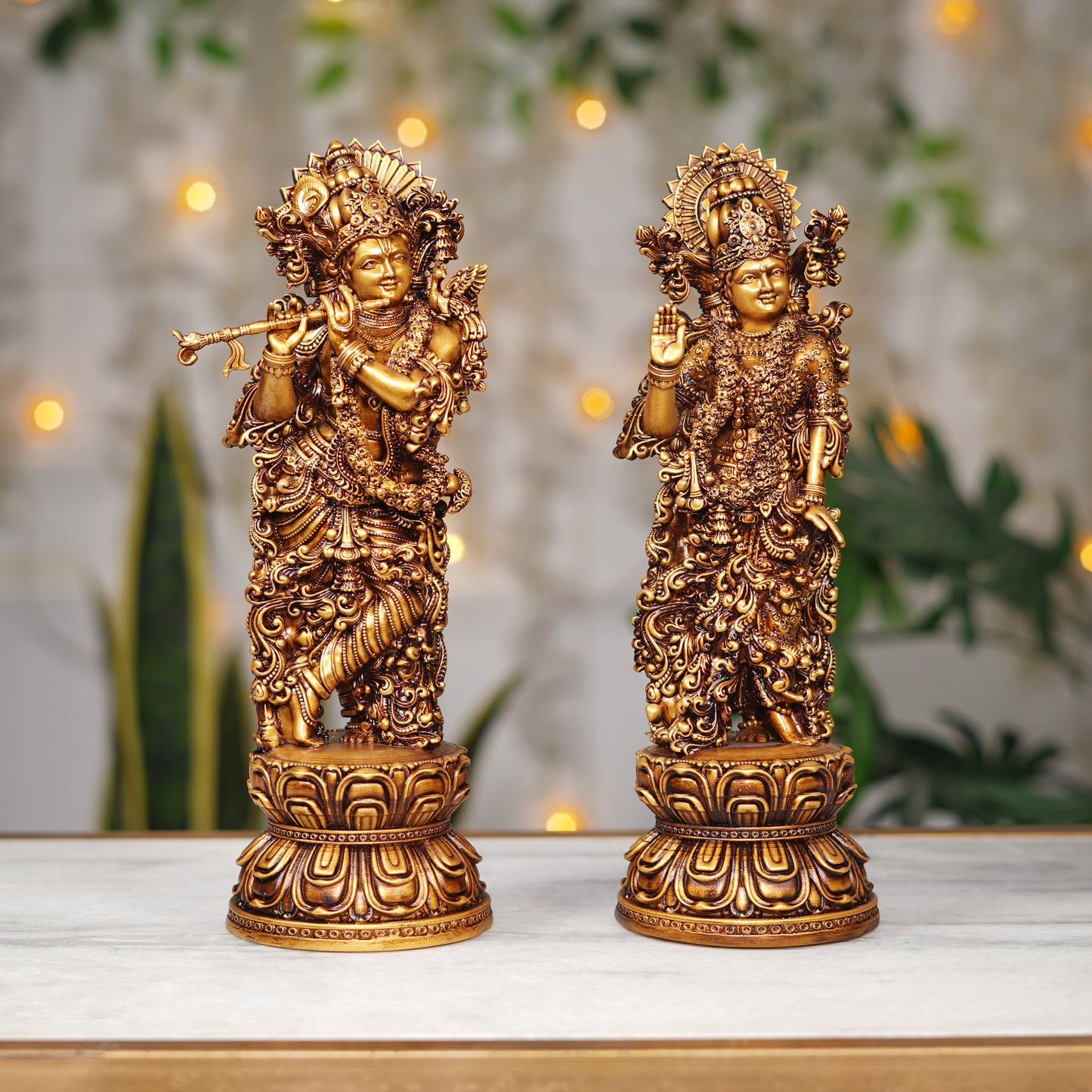 - Bring a touch of divine grace to your home with this stunning Radha Krishna figurine.