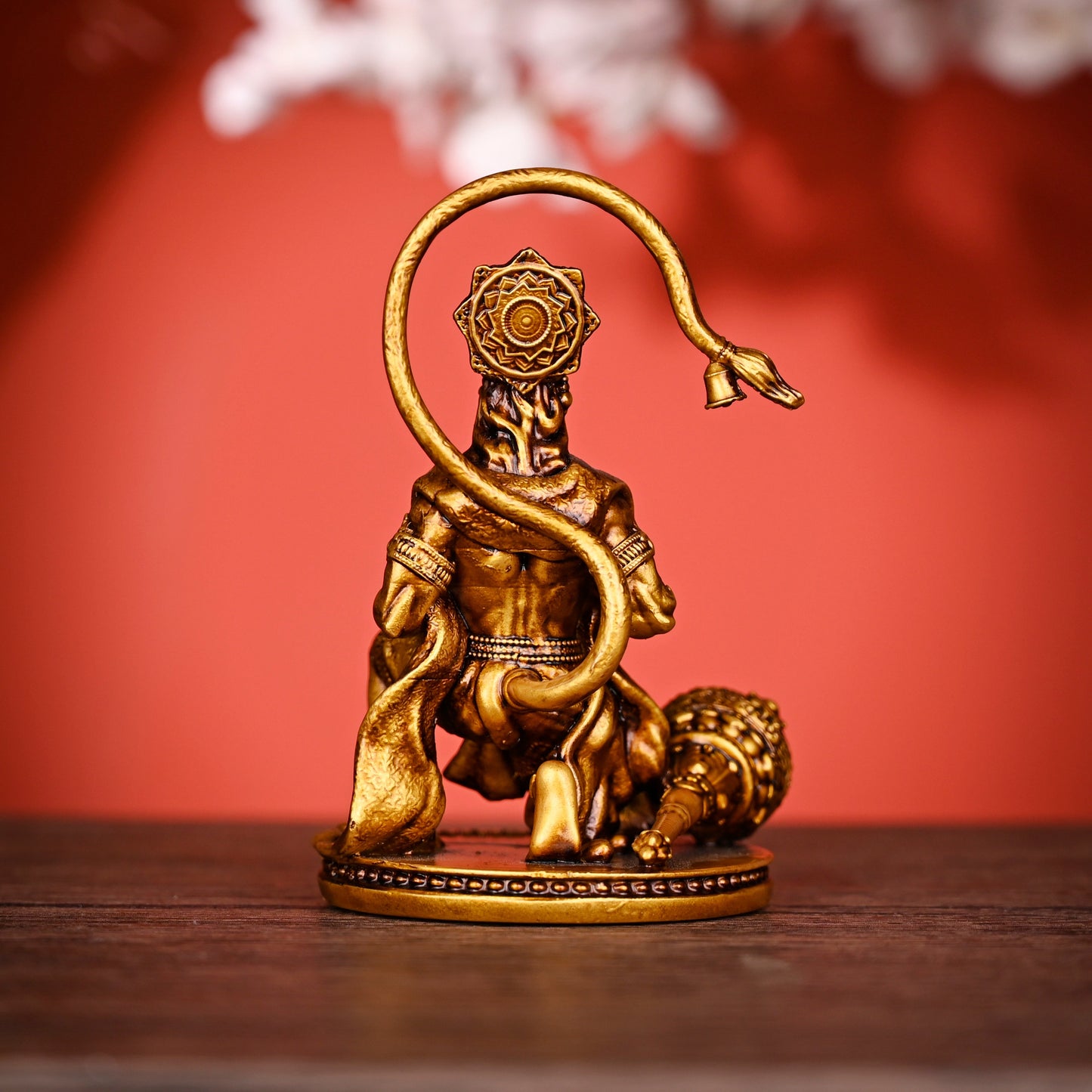 - Immerse yourself in the beauty of the "Ram Bhakt Hanuman" figurine, adorned with an impeccable antique finish.