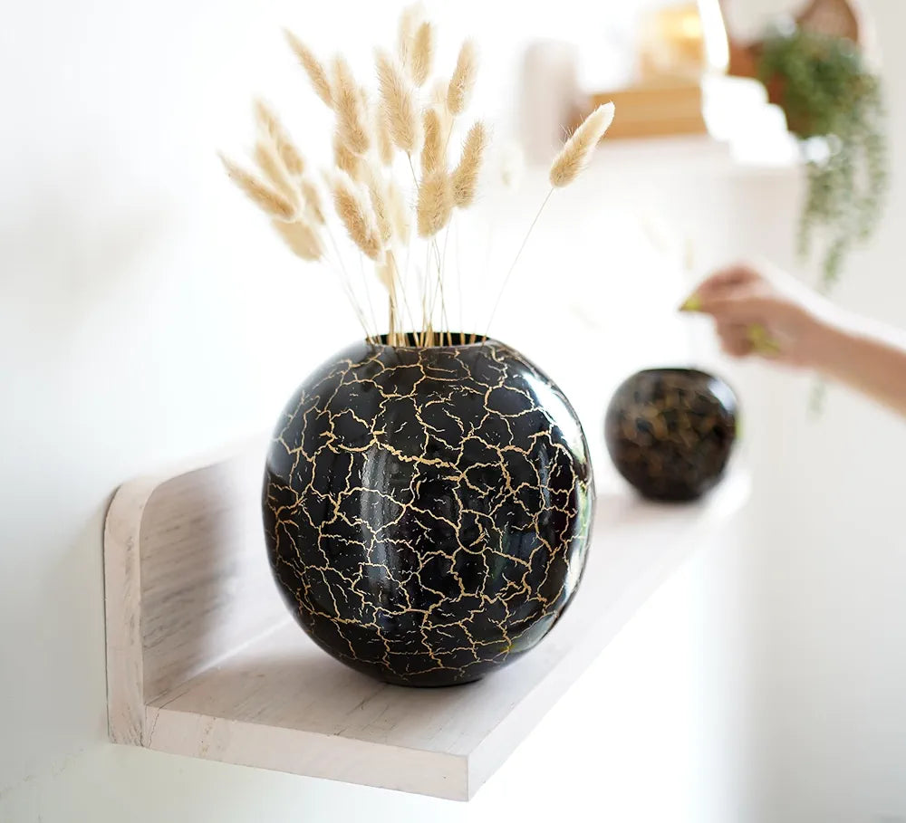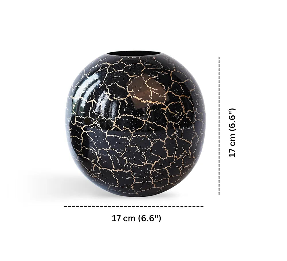 - Material & Shape: This metal Black crackled ball vase is made of high-quality iron, which makes it long-lasting, sturdy, and durable for indoor use. For better maintenance, you can use a dry cloth to clean the dust. The vases come with a soft pad at the bottom to prevent the surface from scratches. This is a handmade product made in India. Note: Slight variation may exist in the product due to the handcrafting process.