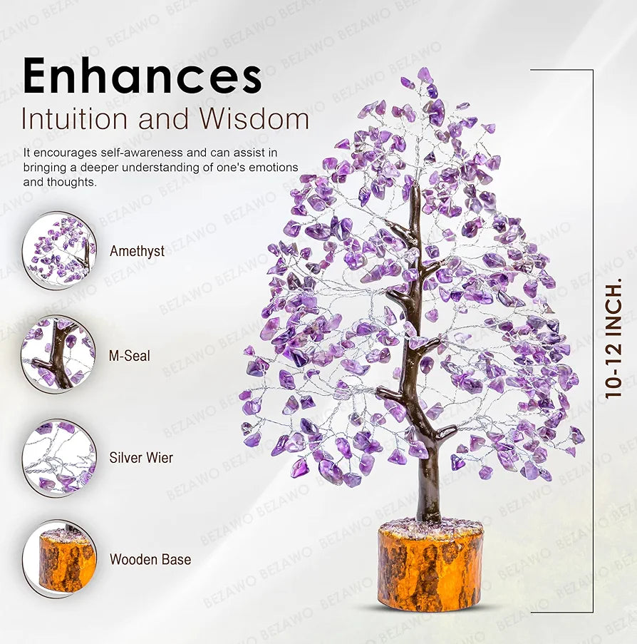 - Amethyst Gemstone Money Tree: This Feng Shui Amethyst Gemstone Money Good Luck Tree of Life (Silver Wire) Size: 10-12 Inch, Handmade in India, Money Tree Brings Good Luck, Prosperity, Provides Positivity and Enhances the Power of Your Surroundings. Crystals Can Be Used for Healing or Environmental Enhancement, Gemstone Tree Represents Self-reflection, Prosperity, Calmness, Balance, Optimism, and Creativity.