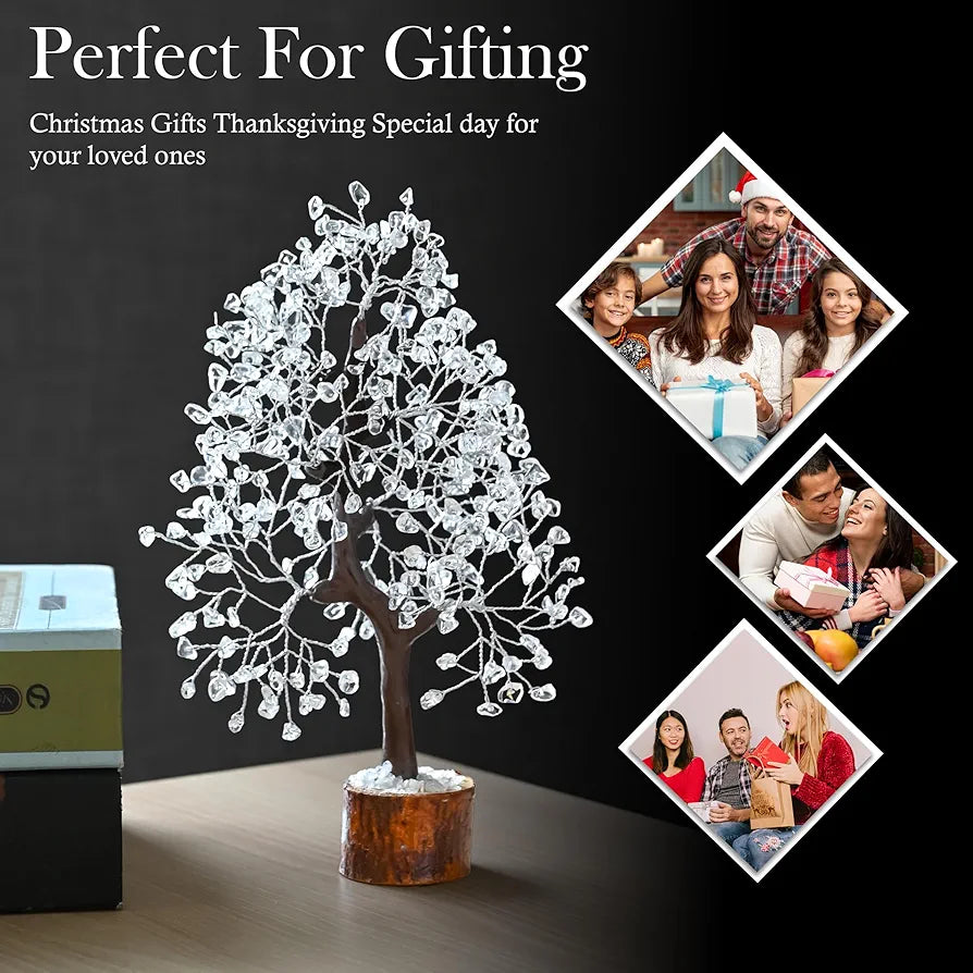 - CLEAR QUARTZ GEMSTONE MONEY TREE: This Feng Shui Clear Quartz Gemstone Money Tree of Life (Silver Wire) Size: 10-12 Inch, Handmade in INDIA, It is said to Brings wealth, Prosperity & Good luck, as well as an excellent Feng Shui Figurine, Something simply beautiful like a gemstone tree can create a space where positivity can freely flow and also attract good things, Useful for Positivity, Healing, Balancing, Devotional & Spiritual.