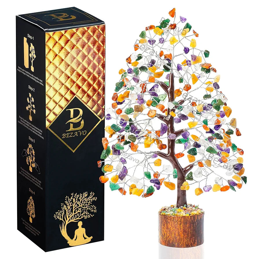 - MIX CHAKRA WEALTH TREE RESOURCES : The base of the Seven Chakra Gemstone Tree is made up of Wooden, The branches & trunk are made up of M Seal & wires and leaves are made up of Seven Chakra Gemstone chips, hand-twisted, We will fold up all branches and pack secured while packing. Once you receive the tree just unfold the branch and leaves with your creativity and patience.