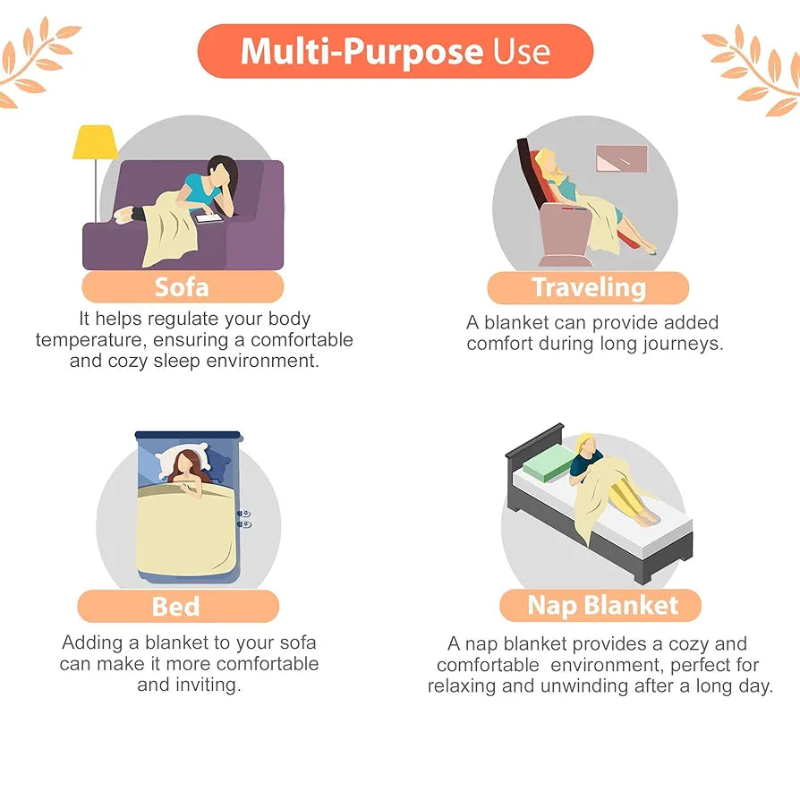 - Versatile Throw Blanket – Ideal for beds, sofas, AC rooms, travel, or lounging.