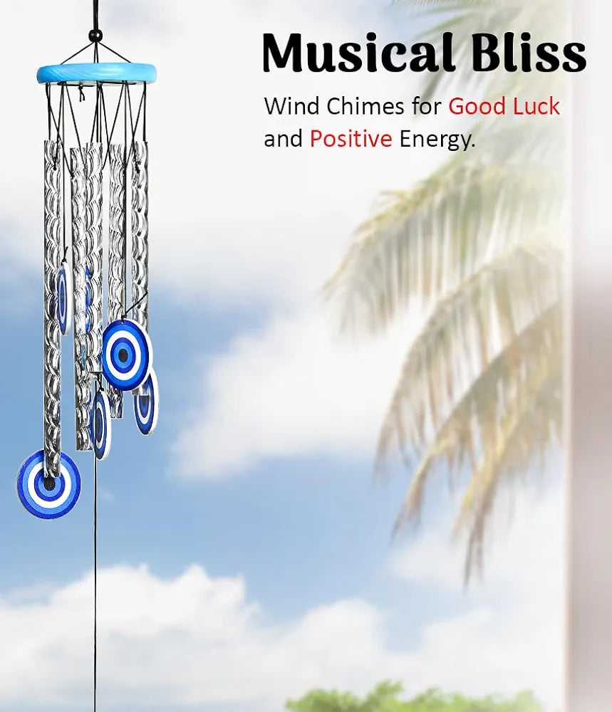 - Beautiful & Soothing Design: Features 5 silver-tone pipes that create calming melodies and 6 Evil Eye wind catchers that sway gracefully, making it a perfect blend of style and function.