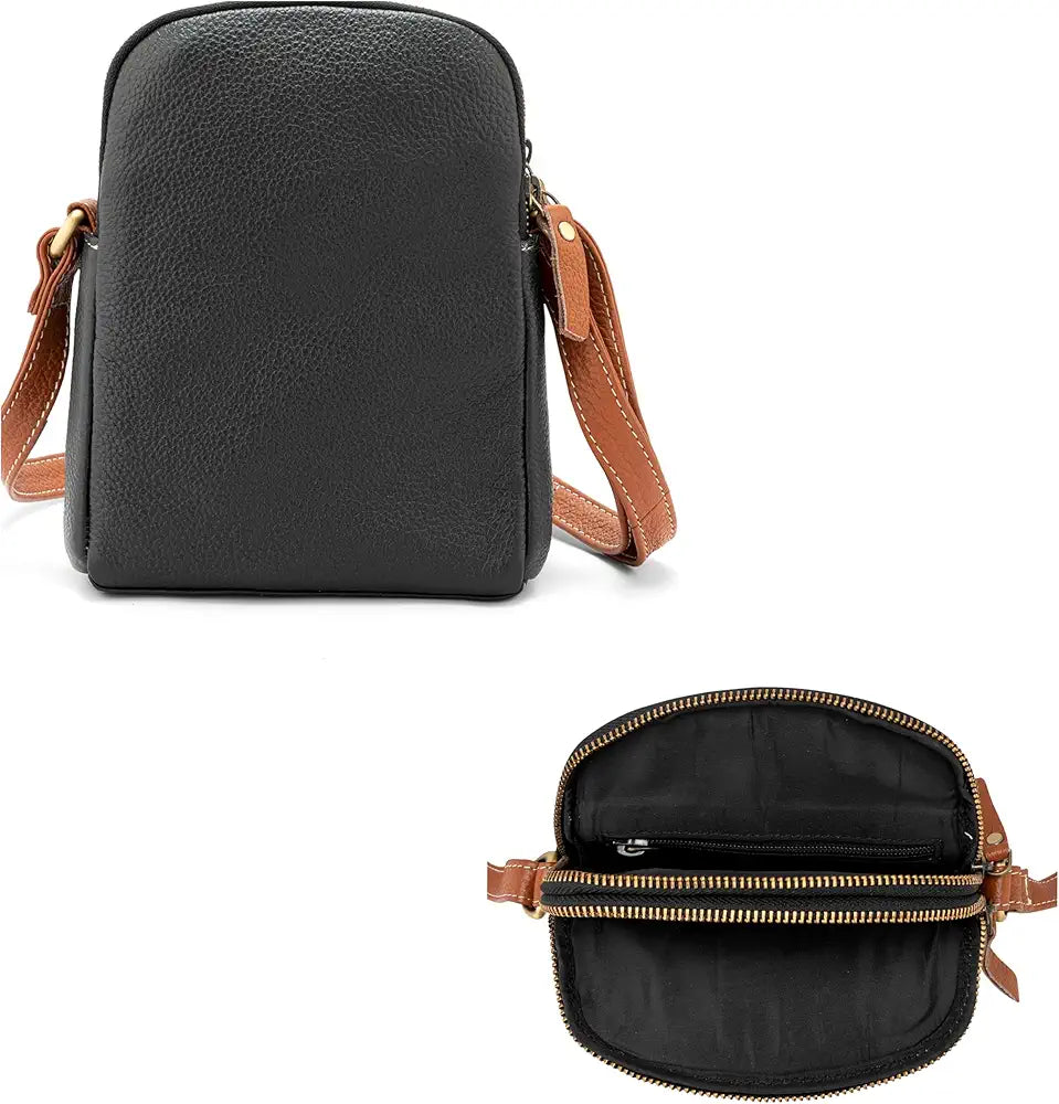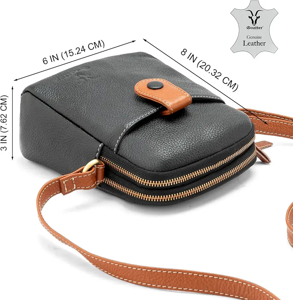 Leather Small Sling Cross-Body Bag For Girls And Women's | Black