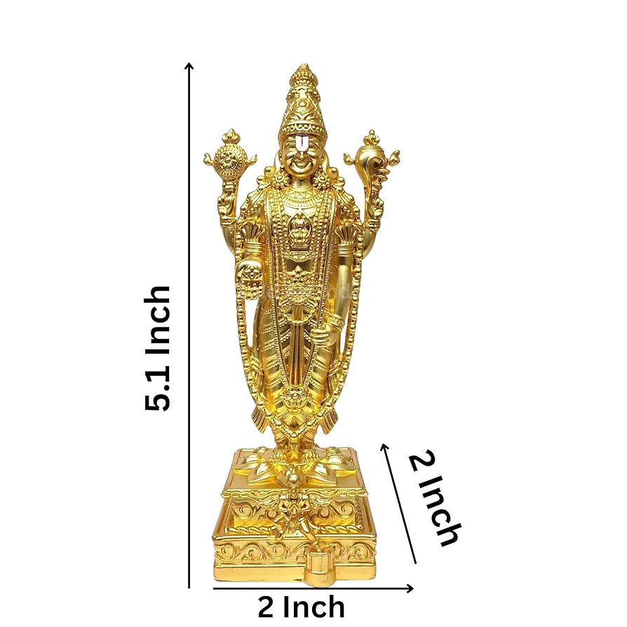 - Tirupati Balaji Size: Gold Matte Lord Tirupati Balaji idol, The idol measures 5.1 inches in height, 2 inches in width, and 2 inches in length, with a weight of approximately 110 grams, making it perfect for home dcor, office, and car dashboard spaces.