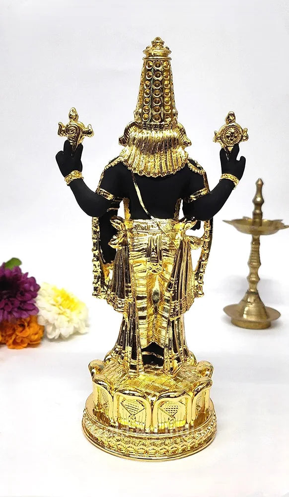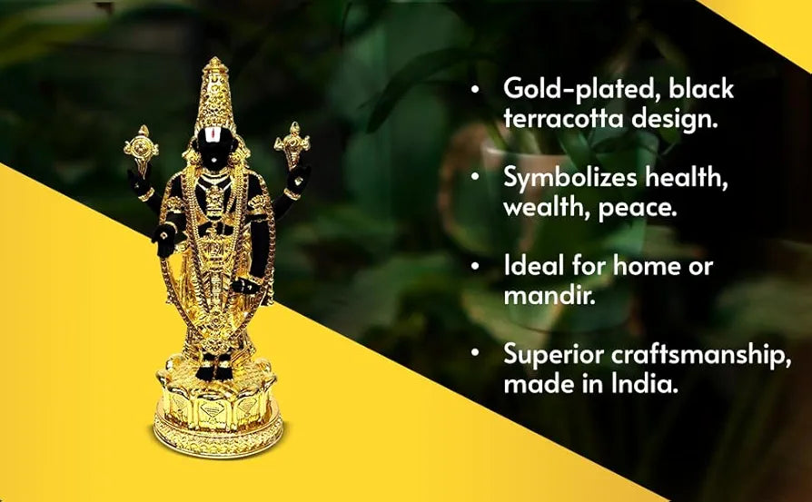 Gold Art India Lord Tirupati Balaji Idol Murti for Mandir Gold Plated Terra Cotta
