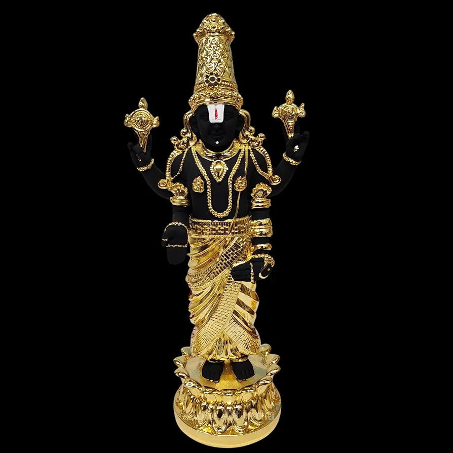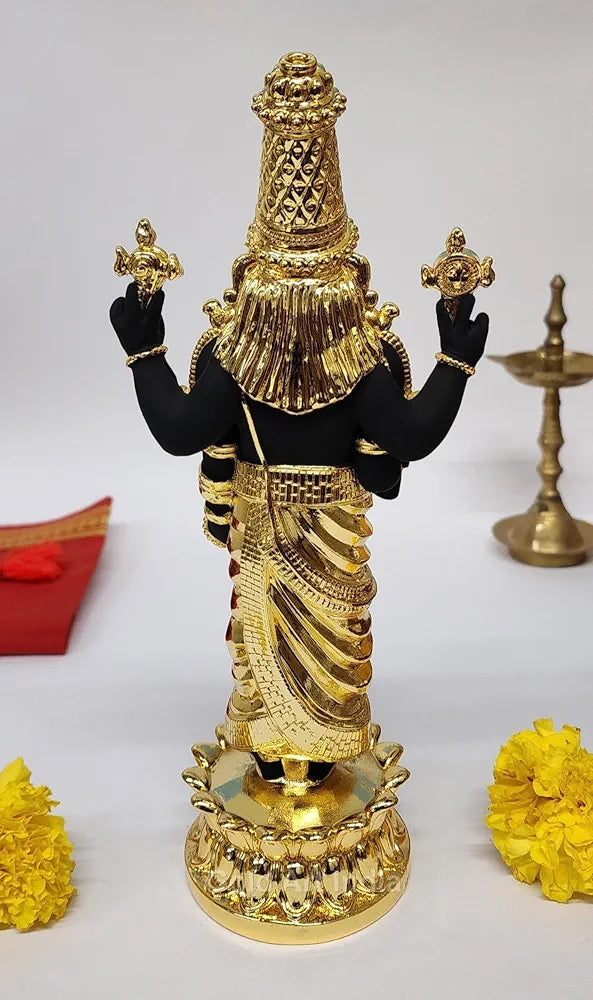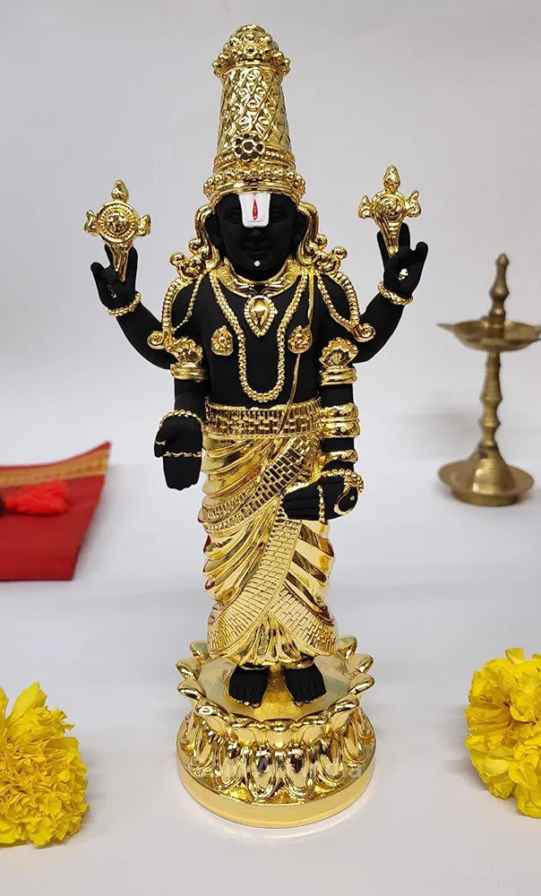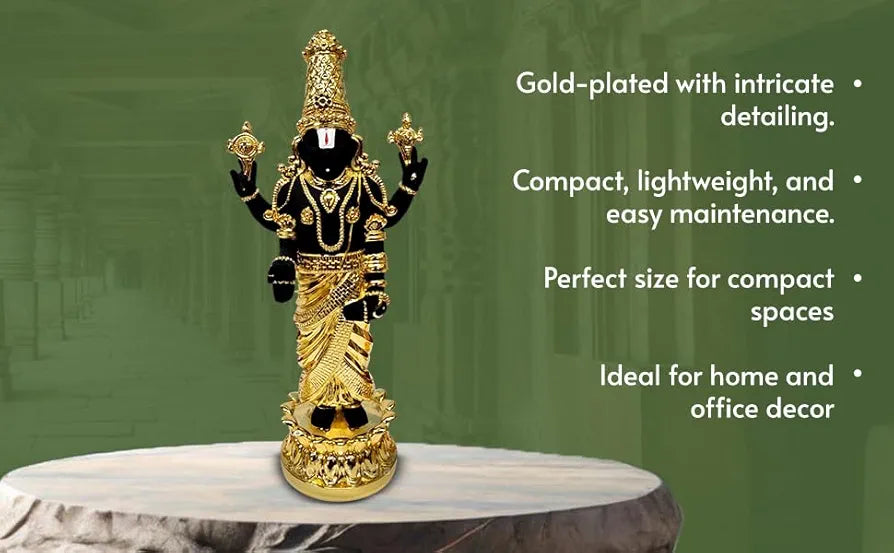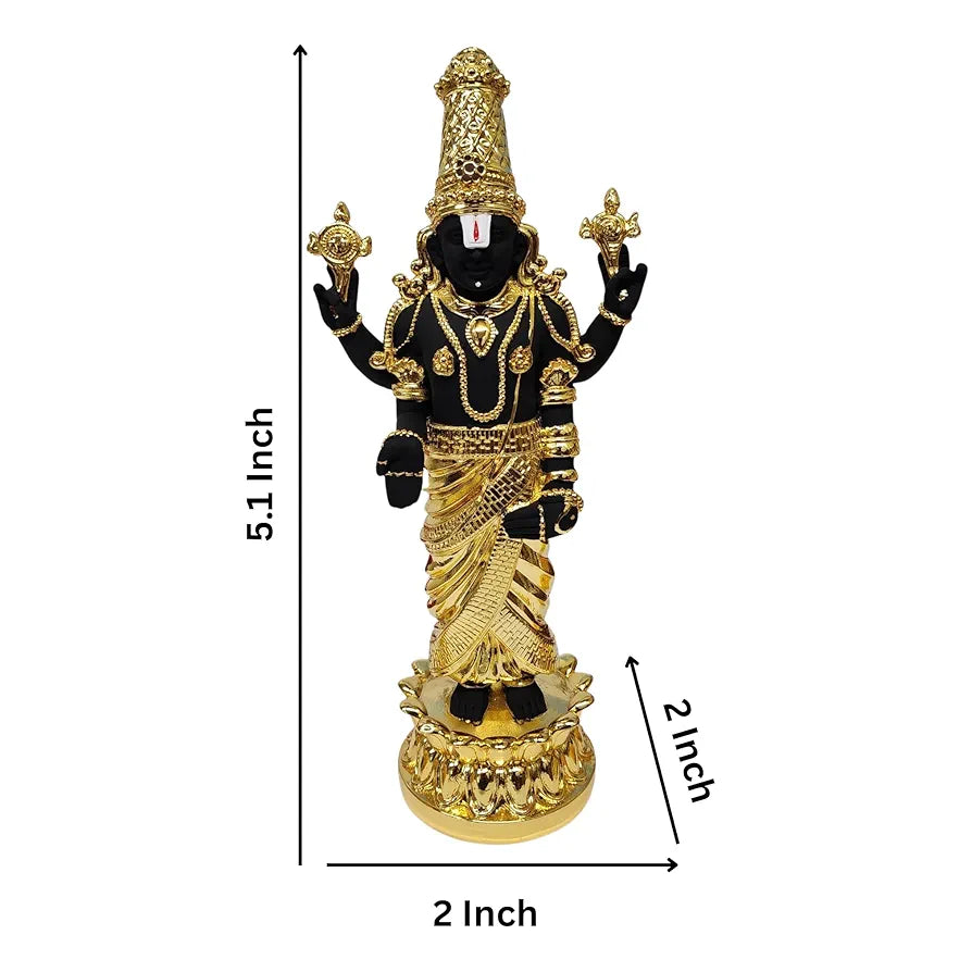 - Kamal Tirupati Balaji Size: Gold Plated Black Terracotta Lord Kamal Tirupati Balaji idol, The idol measures 5.1 inches in height, 2 inches in width, and 2 inches in length, with a weight of approximately 90 grams, making it perfect for car dashboard, mandir and office desk spaces.