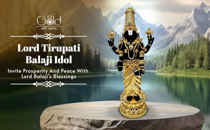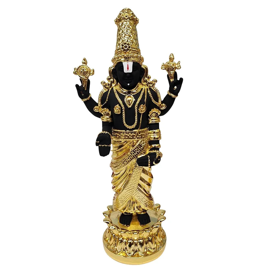 Gold Art India Lord Tirupati Balaji Kamal Gold Plated Black Idol