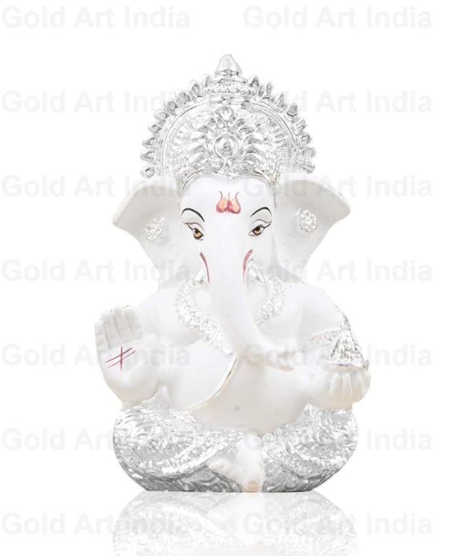 Gold Art India Silver Finish Ganesh Idol For Car Dashboard Ganesha Murti For Home Decor