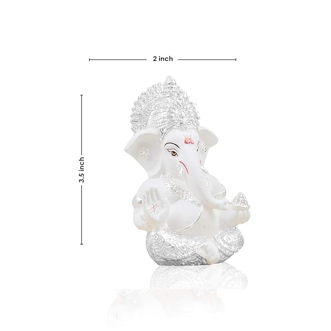 - Size: Height 3.5 Inches x Width 2 Inches | Weight: 140 Grams | Material: Ceramic, Silver Plated with Terracotta hand painted Package Contents: 1. Silver Plated Ganesha Idol