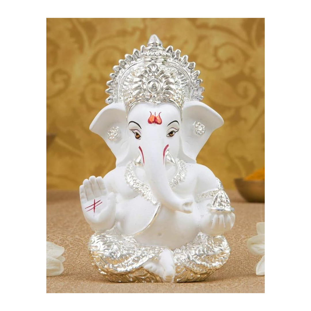 Gold Art India Silver plated White Ganesha for Car Dashboard Home Decor Gifting