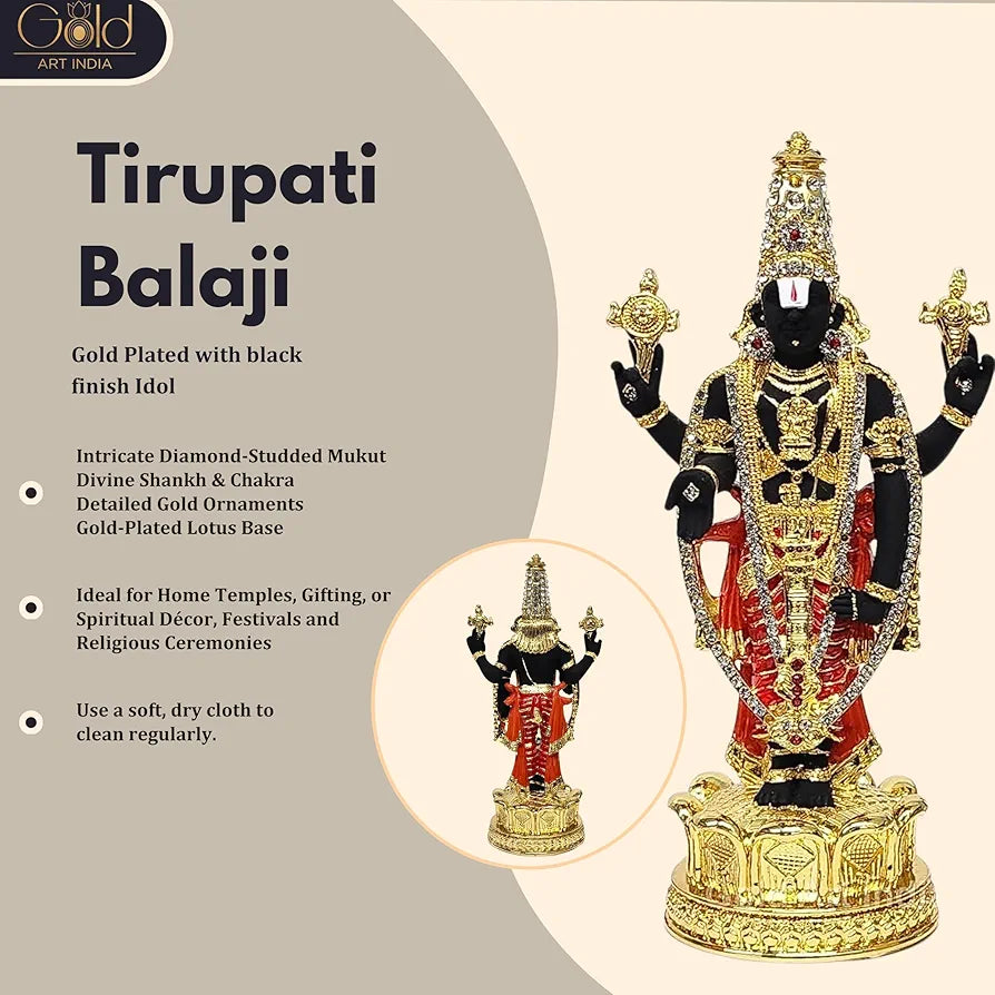 Gold Art India Tirupati Balaji Idol for Mandir Black Body Red Dhoti