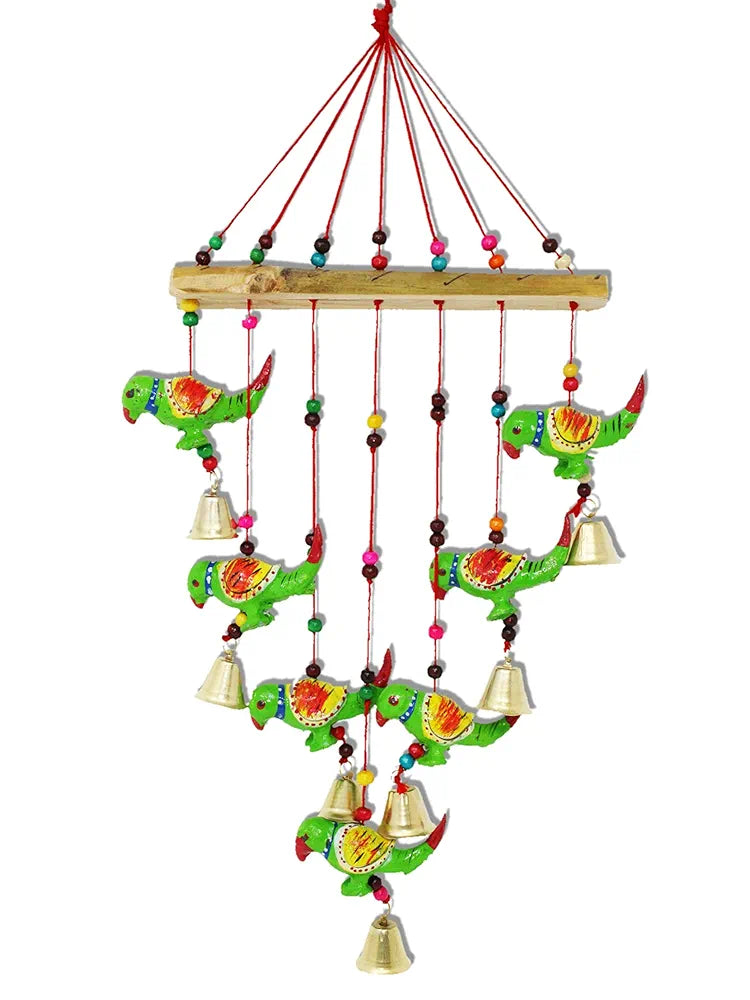 - Package Content - Handcrafted Rajasthani Parrot windchime Door / Wall Hanging Decorative Product Size in CM - 24*5*63 Length*Width*Height)