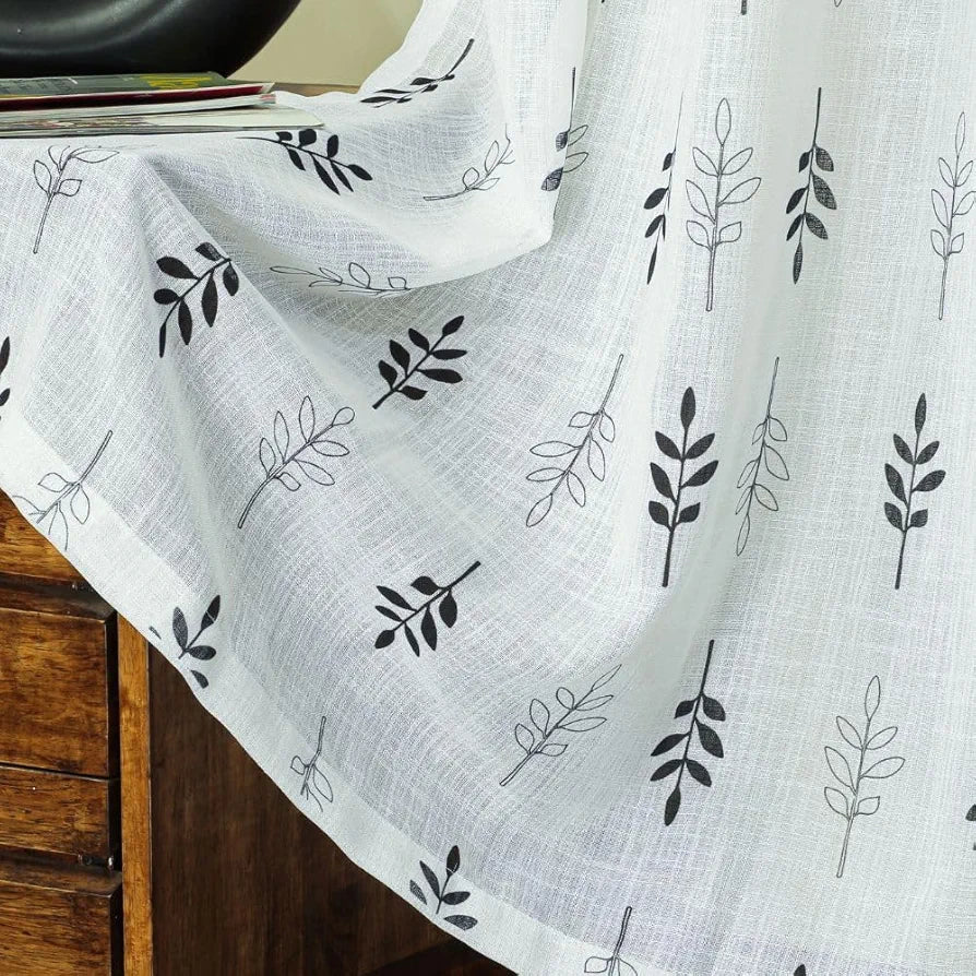 Homadorn Linen Sheer Printed Semi Transparent Curtains for Window Set of 2 Black Foliate