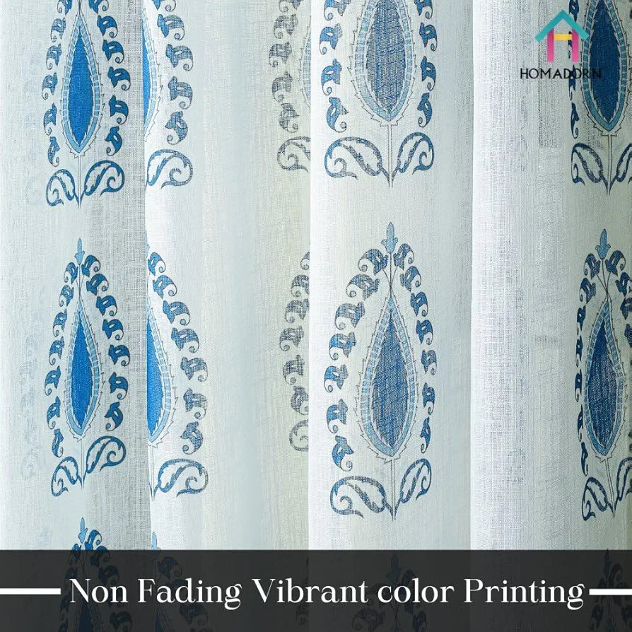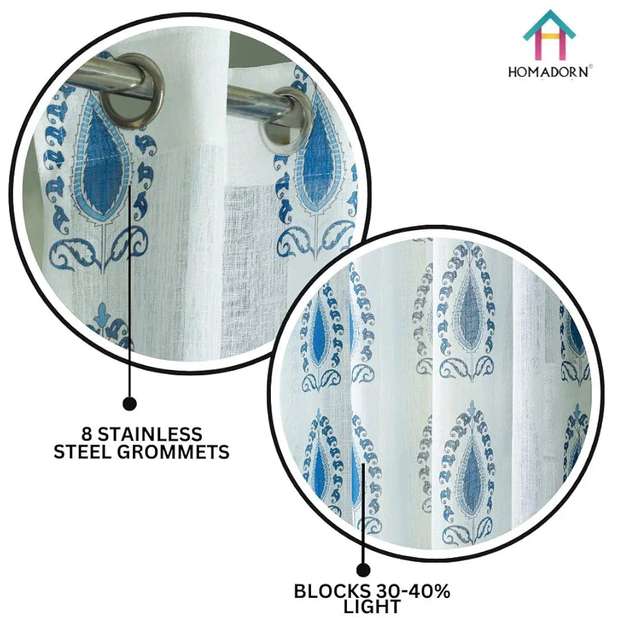 - MATERIAL: HOMADORN printed sheer curtains are designer solution for your windows. These curtains are linen textured turning into the home you love. These curtains uplift the style statement of your house offering a balance of privacy and light filtration by blocking 30-40% of light.