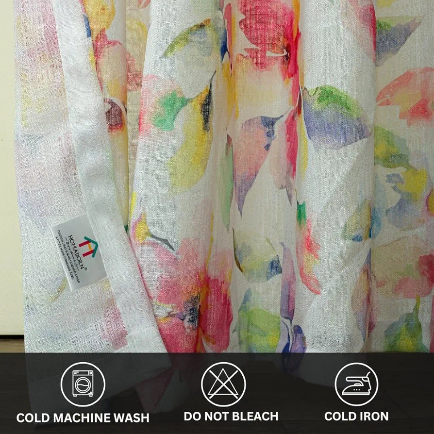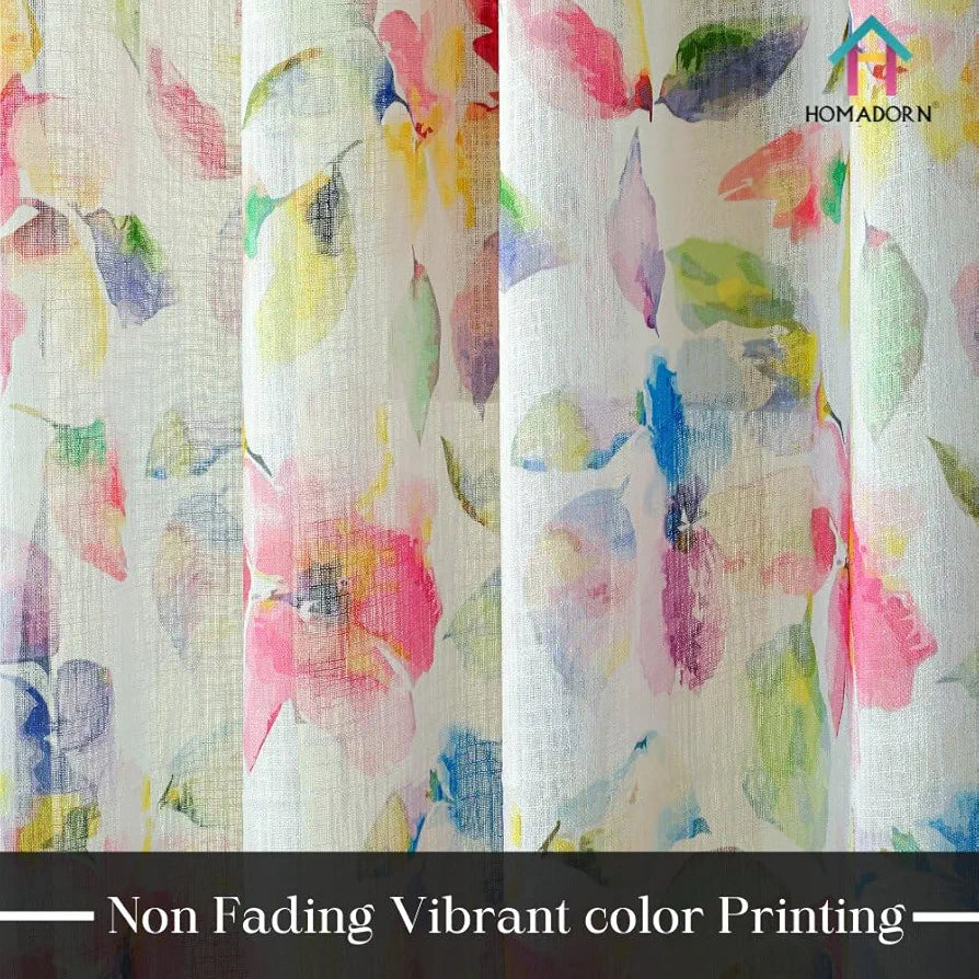 Homadorn Linen Sheer Printed Semi Transparent Curtains for Window Set of 2 Multi Watercolor
