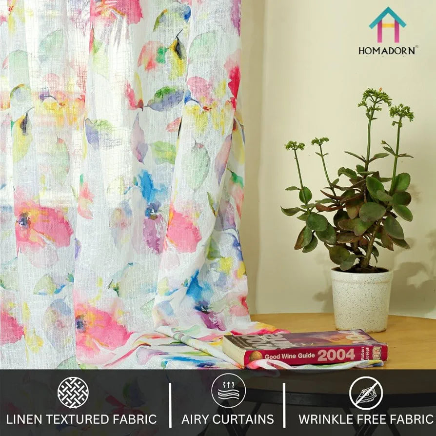 - MATERIAL: HOMADORN printed sheer curtains are designer solution for your windows. These curtains are linen textured turning into the home you love. These curtains uplift the style statement of your house offering a balance of privacy and light filtration by blocking 30-40% of light.