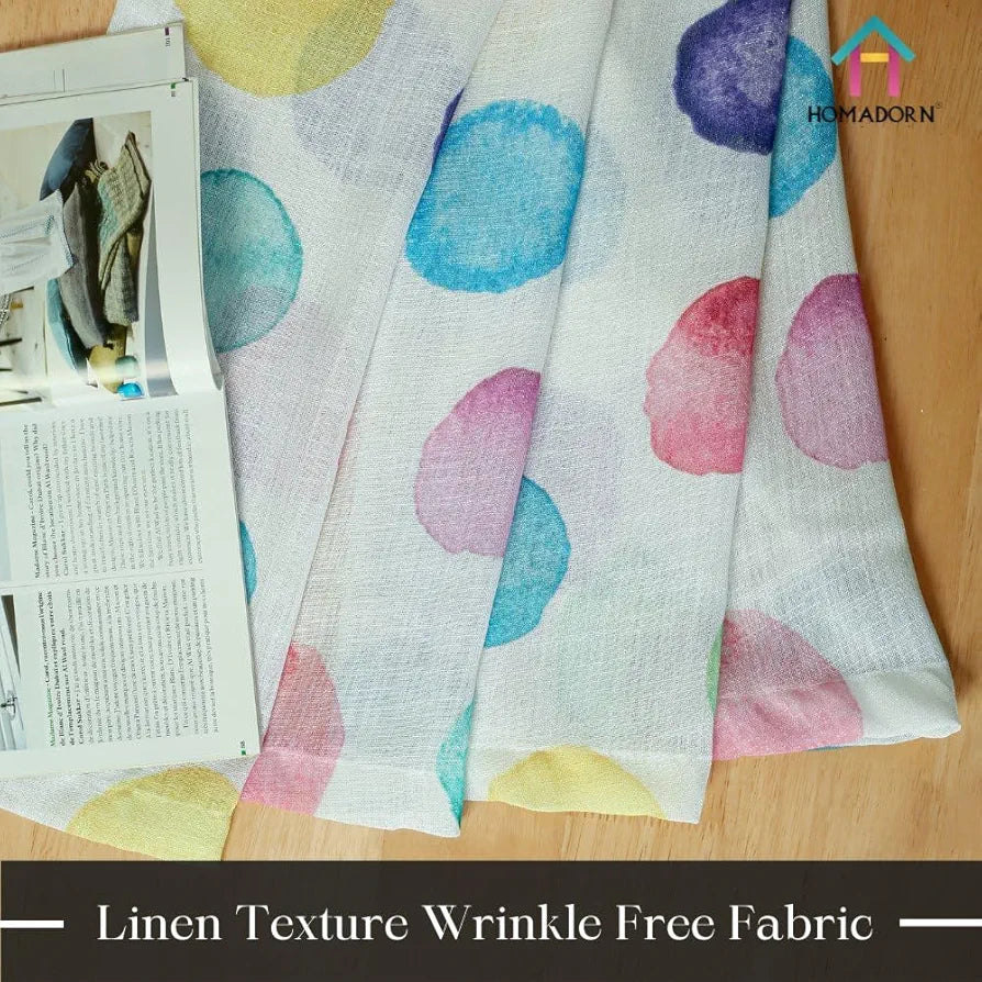 Homadorn Linen Sheer Printed Semi Transparent Curtains for Window Set of 2 Rainbow Circles