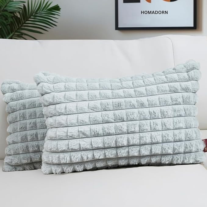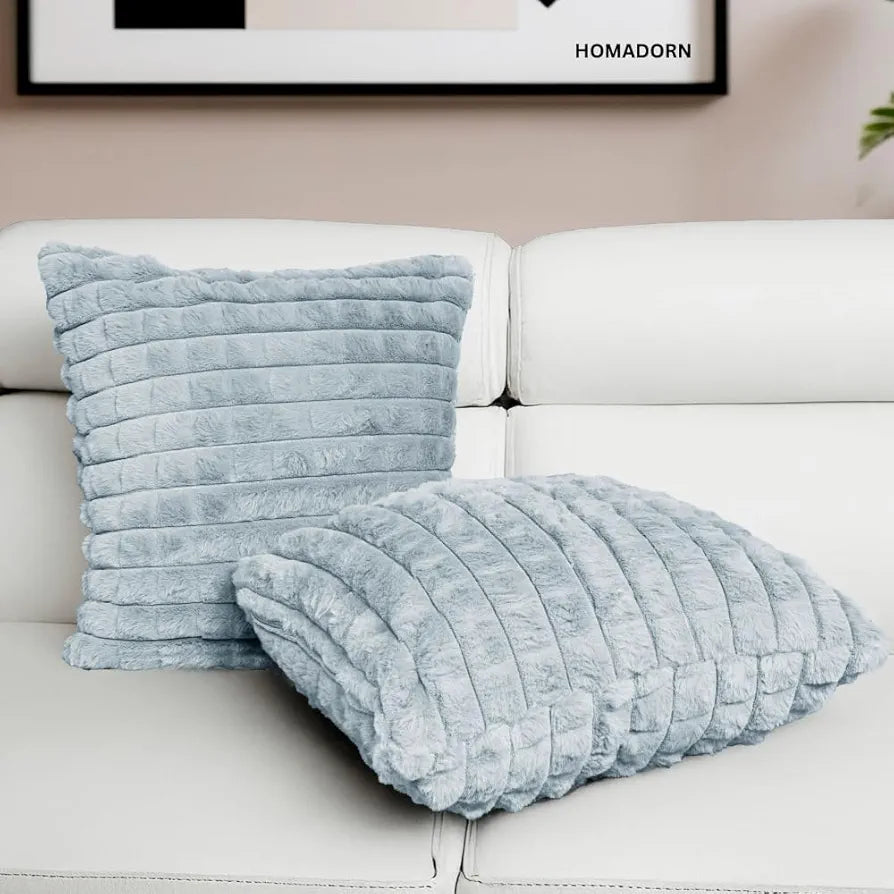 Homadorn Luxury Plush Fur Reversible Cushion Cover Ultra Soft & Cozy Silver Grey