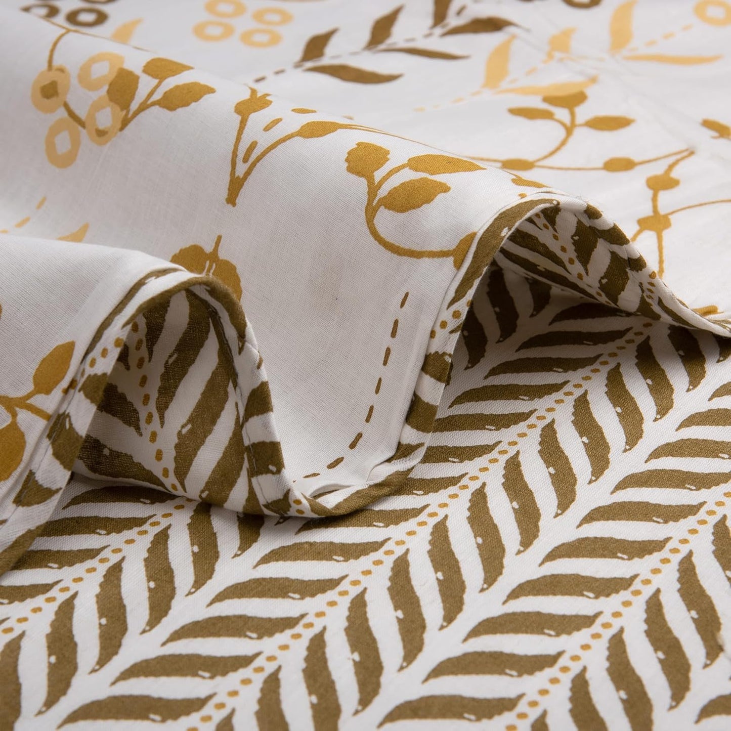 Huesland 100% Cotton Reversible Dohar Single Bed Cotton | Soft Cambric Weave, All Weather Light Ac Blanket | White, Moss Green & Mustard