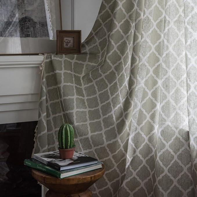 Huesland Cotton Curtains for Windows, 5 Feet Long 1 Bohemian Eyelet Curtain | Quatrefoil Dessert Sage
