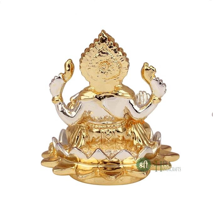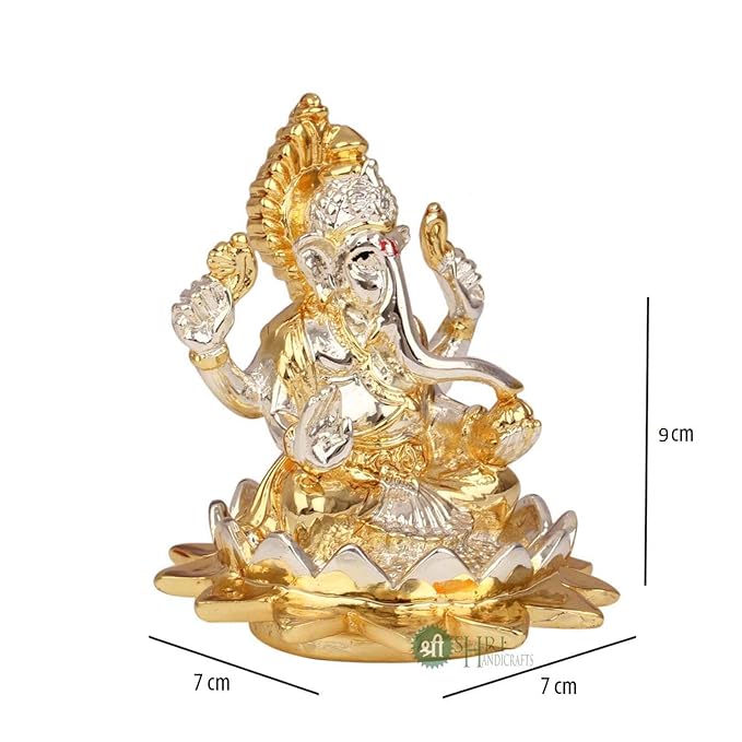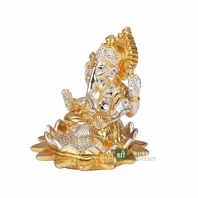 Indicast Gold & Silver Plated Ganesha Idol Murti Sitting on Lotus Kamal Home and Office Decor and Gifts