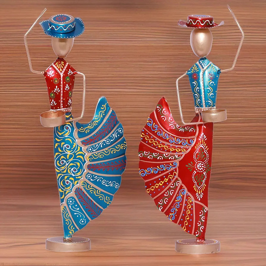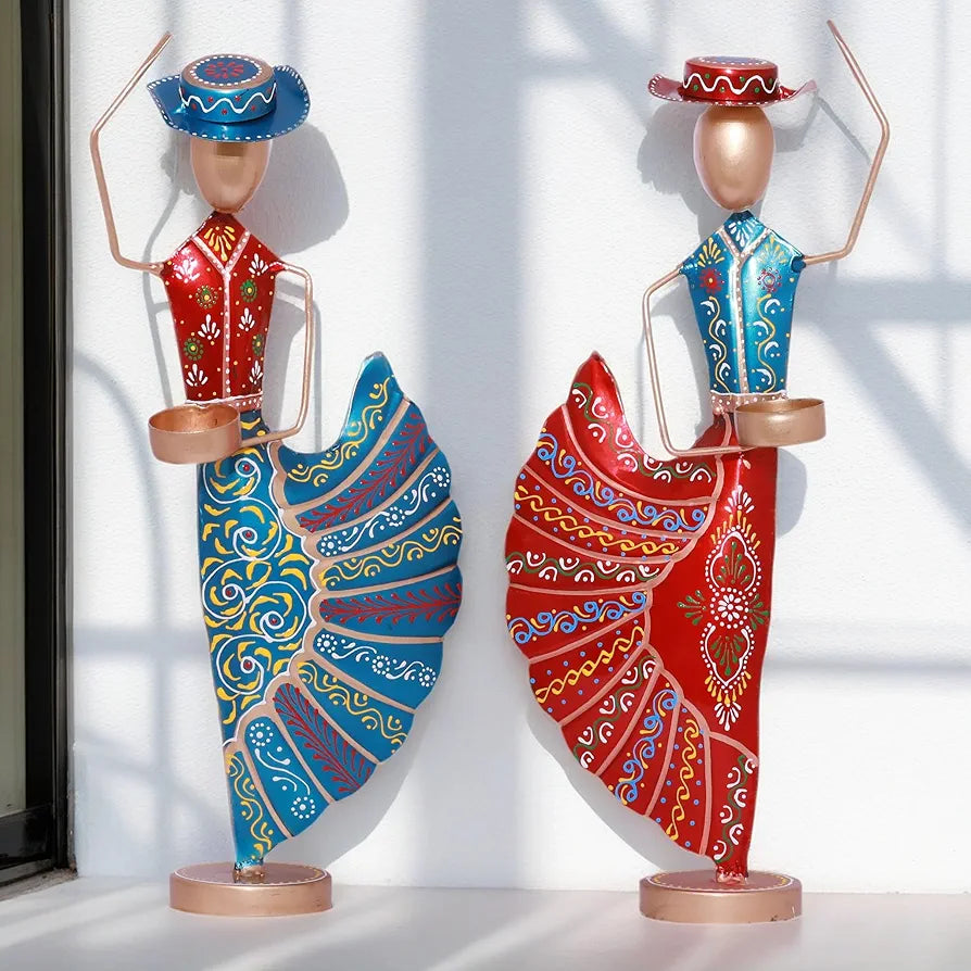 Kraftskala Colorful Dancers Iron Showpiece with Tealight Candle Holder