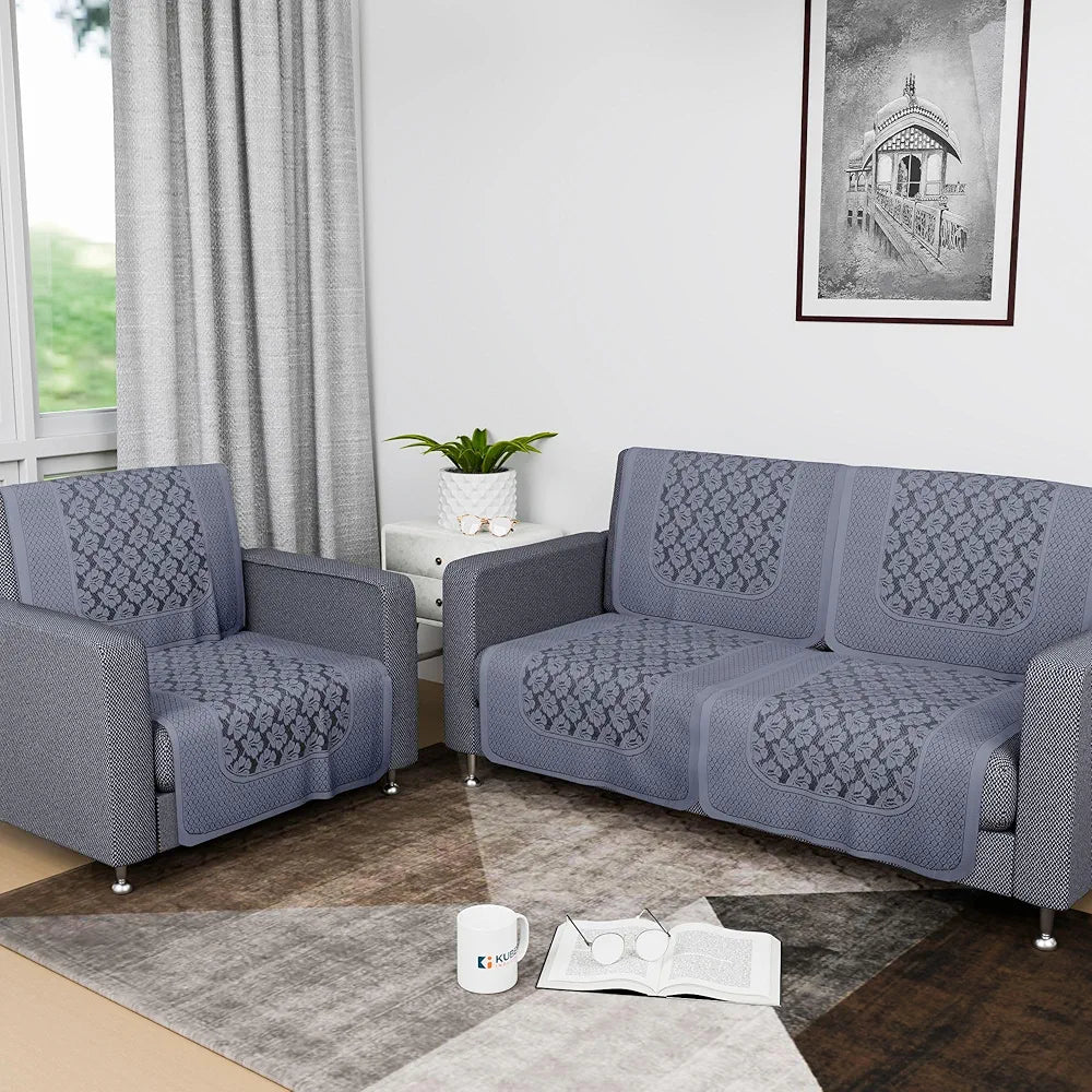Kuber Industries Net 2+1 Seater Sofa Slip Cover Couch Cover Plain Leonardo Flower Print Grey