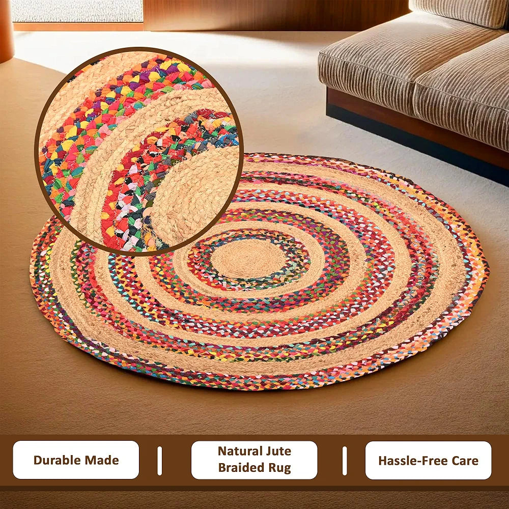 Kuber Industries Satranji Round Jute Rug & Carpet for Home & Bedroom Stripes Pink