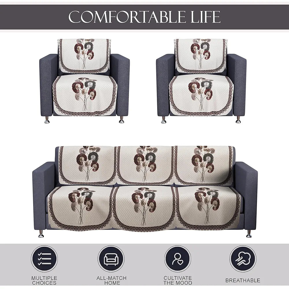 Kuber Industries Set of 10 Velvet Anti-Skid Sofa Cover 5-Seater Digital Flower-Cream & Brown