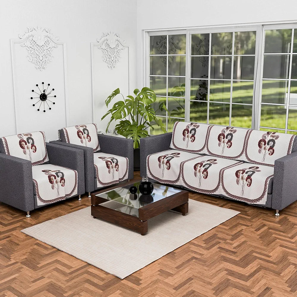 - Package Contains - (10 Pcs) 5 Seater Sofa Cover | Color - Digital Flower Ultra Sonic Quilted-Cream & Brown | Material - Velvet | Product Dimensions - 3 Seater : 177 cm x 70 cm x 1 cm | Single Seater : 70 cm x 60 cm x 1 cm