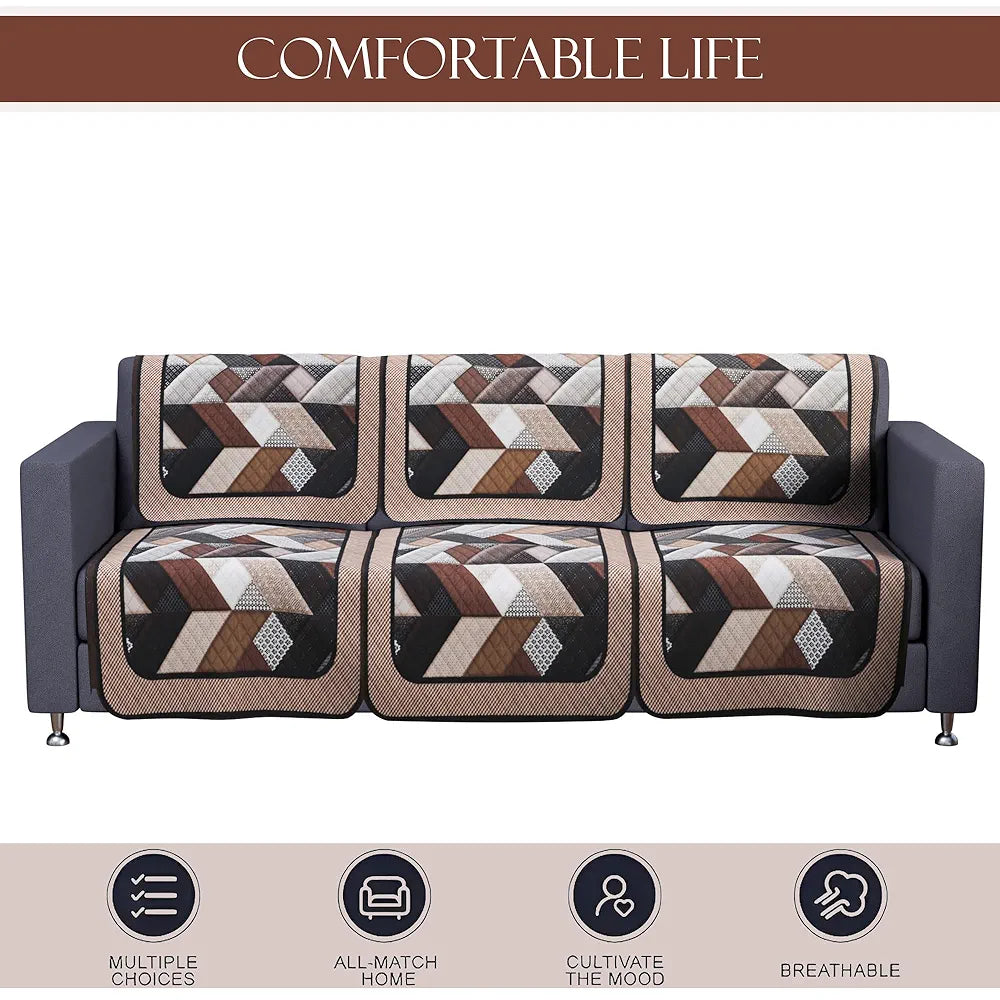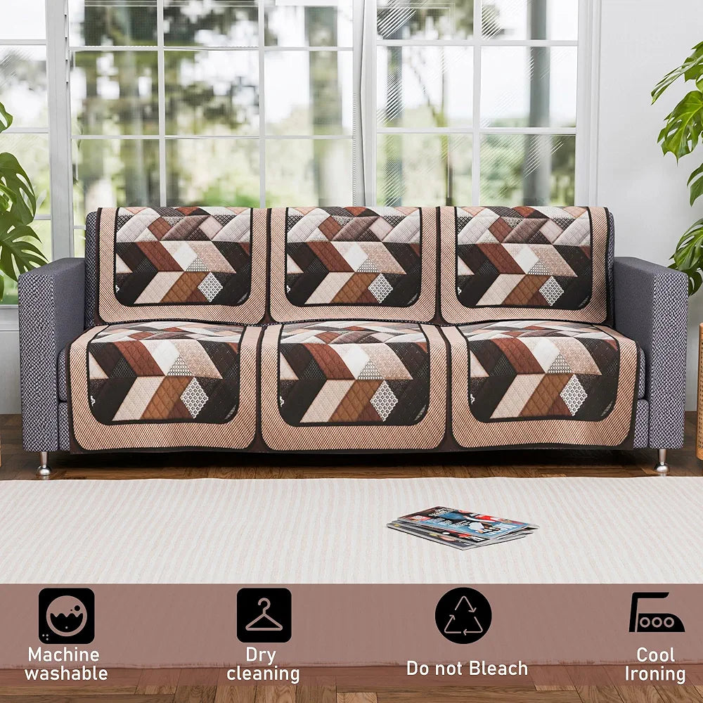 - Package Contains - (6 Pcs) 3 Seater Sofa Cover | Color - Triangular Ultra Sonic Quilted-Cream & Brown | Material - Velvet | Product Dimensions - 177 cm x 70 cm x 1 cm
