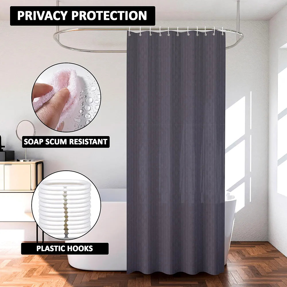 Kuber Industries Shower Curtain Bathroom Shower Curtain 8 Rings Curtain Lining Grey