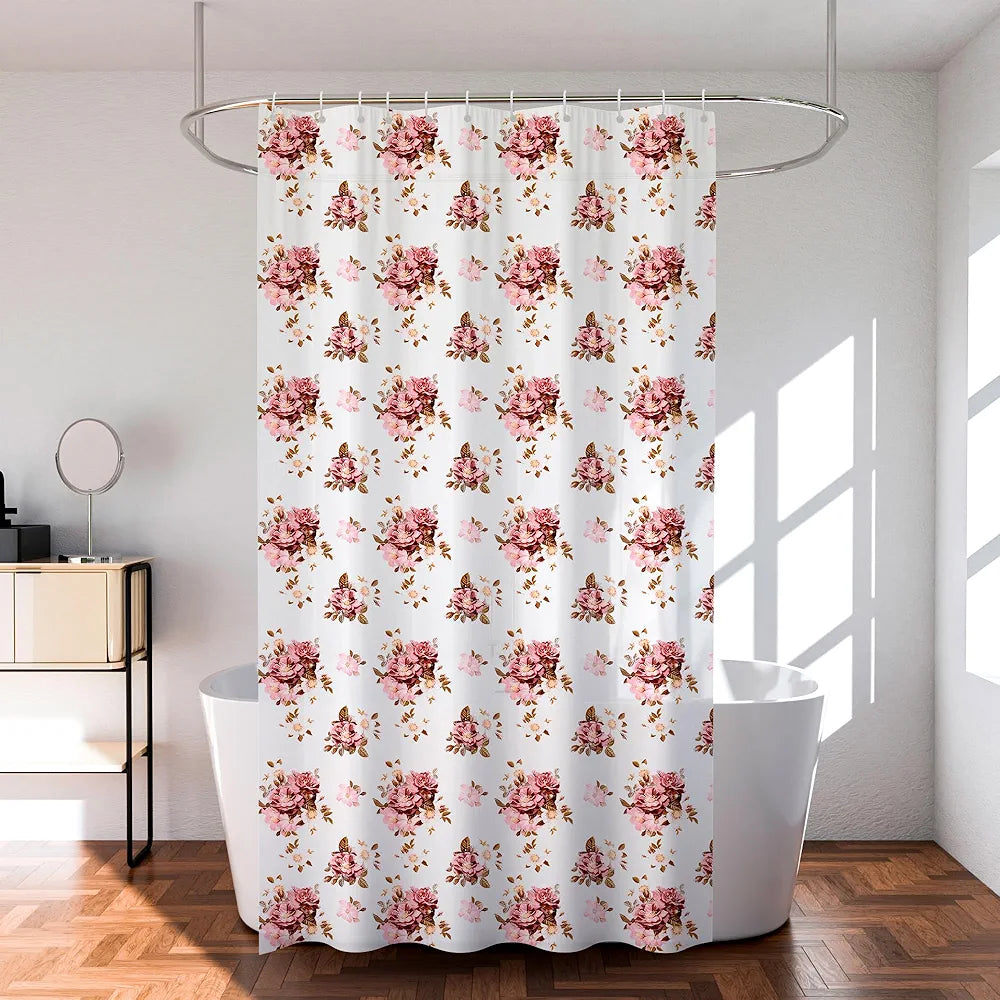 - PACKAGE CONTAINS : 1 Piece Shower Curtain | 7 Feet | Pink Flower-Design | MATERIAL : PVC | PRODUCT DIMENSION : 136 cm x 1 cm x 214 cm