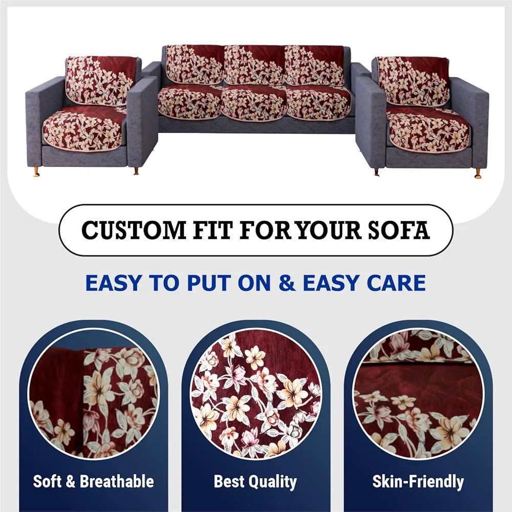 Kuber Industries Sofa Cover Set Flower Sofa Cover Velvet 5 Seater Couch Cover Maroon