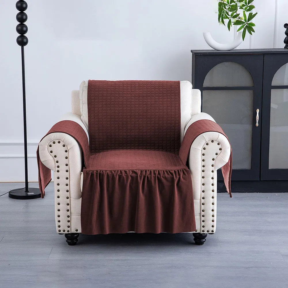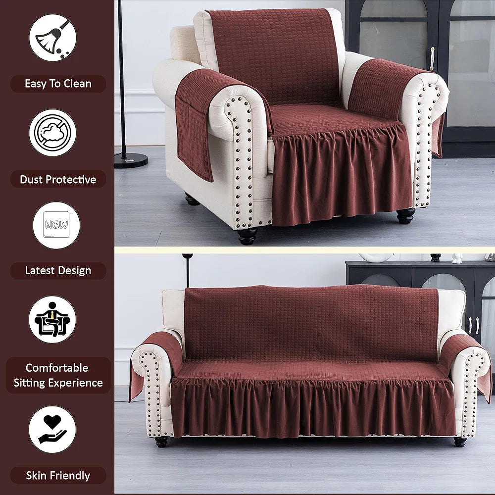 Kuber Industries Soft Velvet Quilted Single Seater Sofa Cover with Pocket Arms Frill Maroon