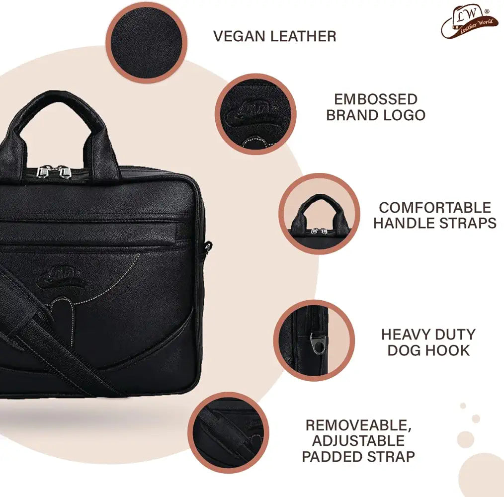 Pu Leather Mini 14 inch Laptop Office Bag | Office Bag | Messenger Bag | Travel Bag | Black Colour