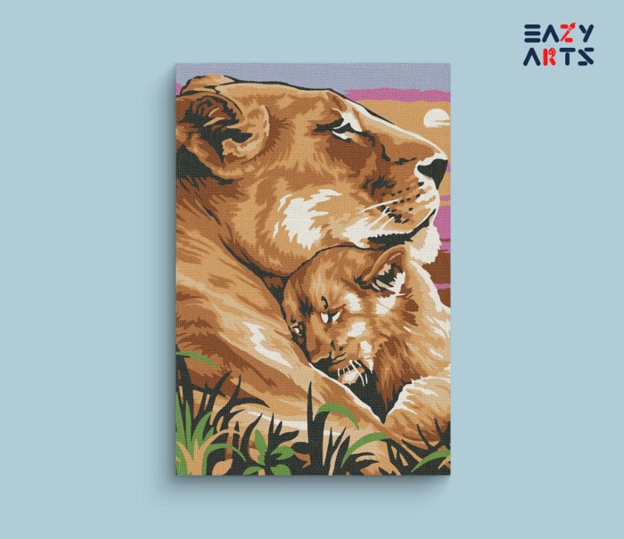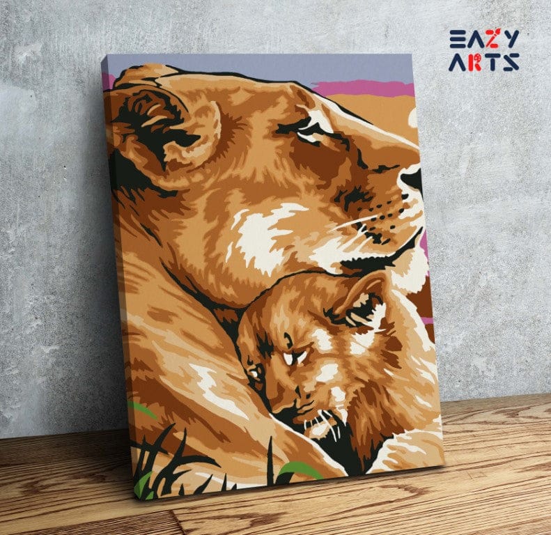 Eazy Arts Lion Mom N Baby Paint By Numbers Kit For Kids